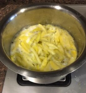- After that, we cook it in boiling water till tender. This is because once the sugar is added, there is no cooking of the fruit. So, you make it as soft or as crisp you want before adding sugar.