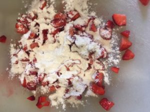 - Fold chopped and dusted strawberries.