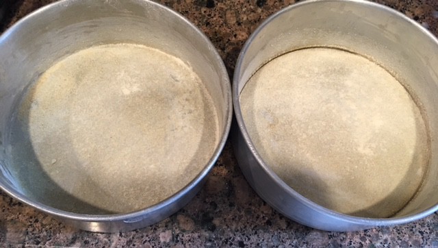 Pour this batter into the prepared cake pans, half in each pan.
