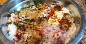 - Lots of onion, green coriander, green chillies, little ghee and spices are added to the Jowar flour and is mixed nicely by rubbing everything together. Then the mix is left as it is for some time, of course after covering it. During this time, onion releases its moisture and makes the dough wet. And then it is formed into a dough by adding little water at a time.